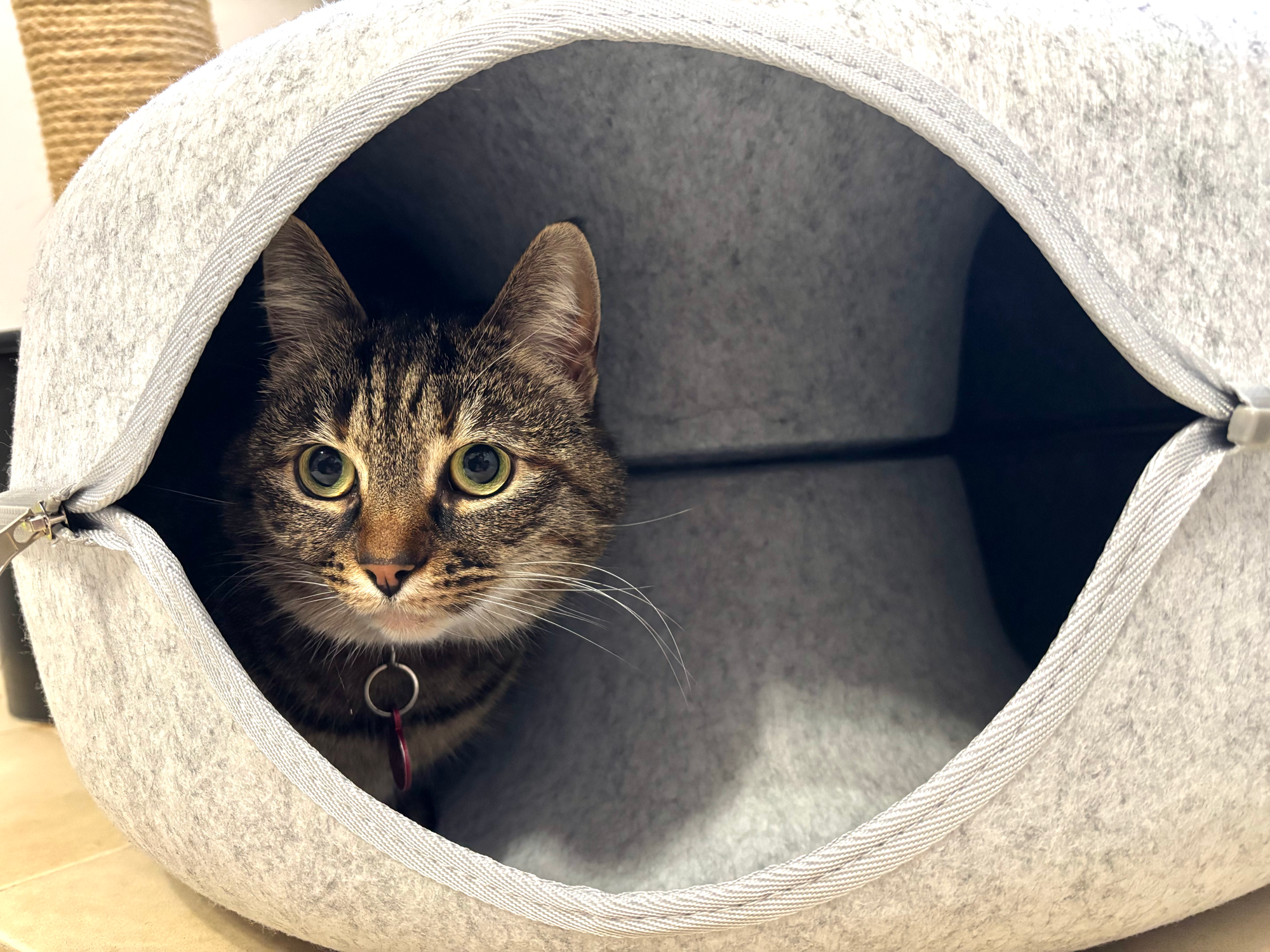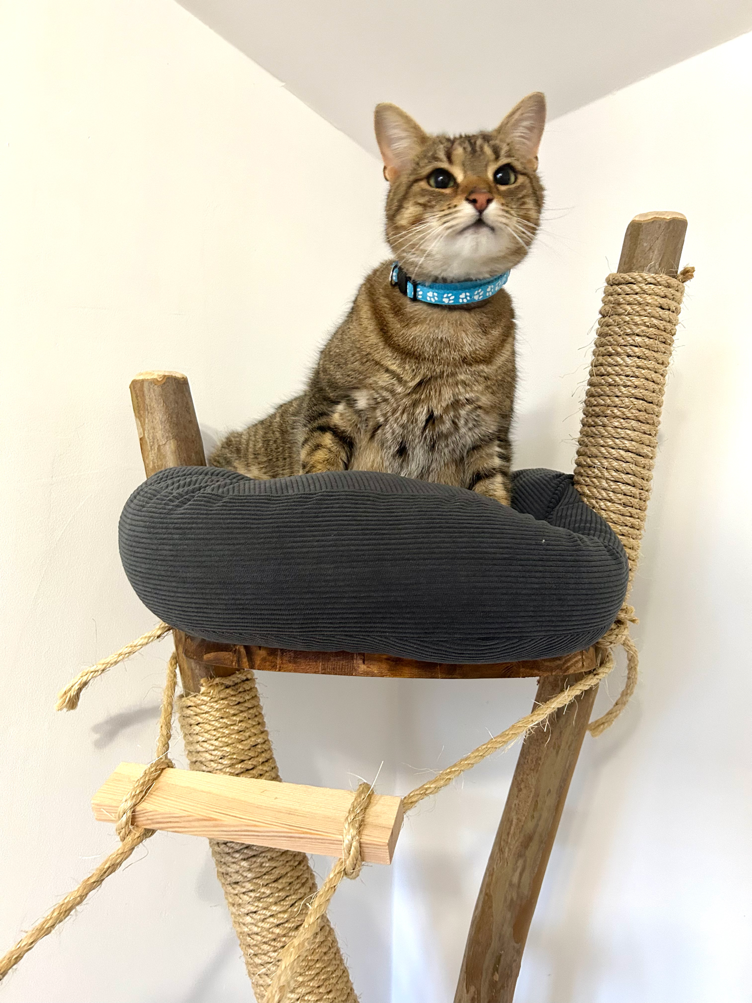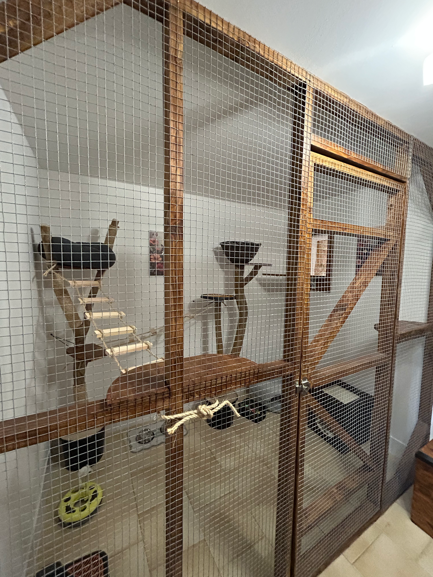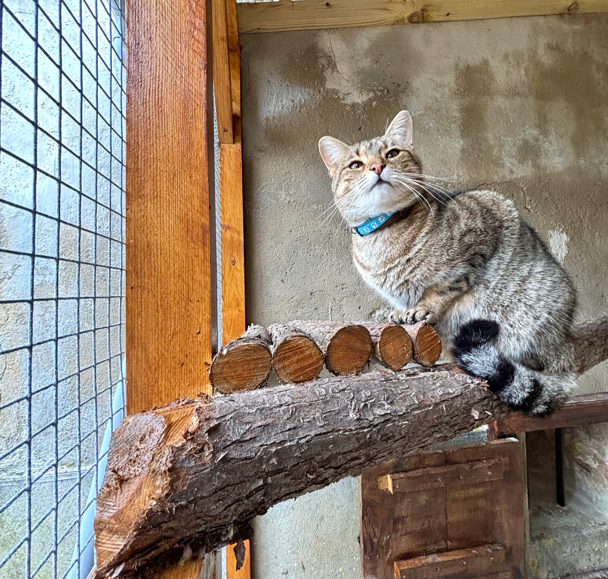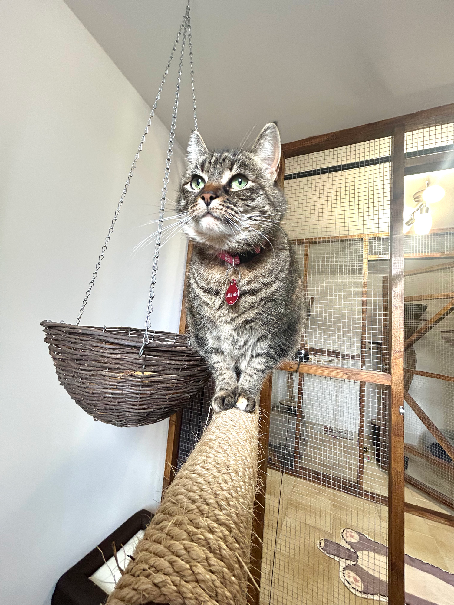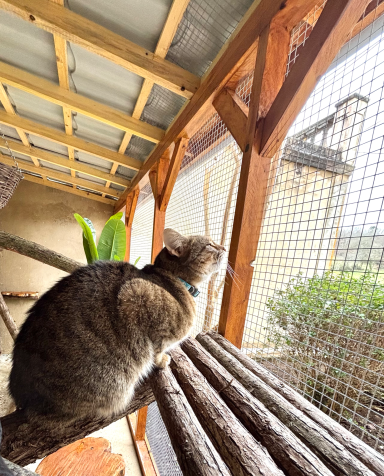 * Home comforts with plenty of climbing options, tunnels, scratch pads, bed and blankets and toys.