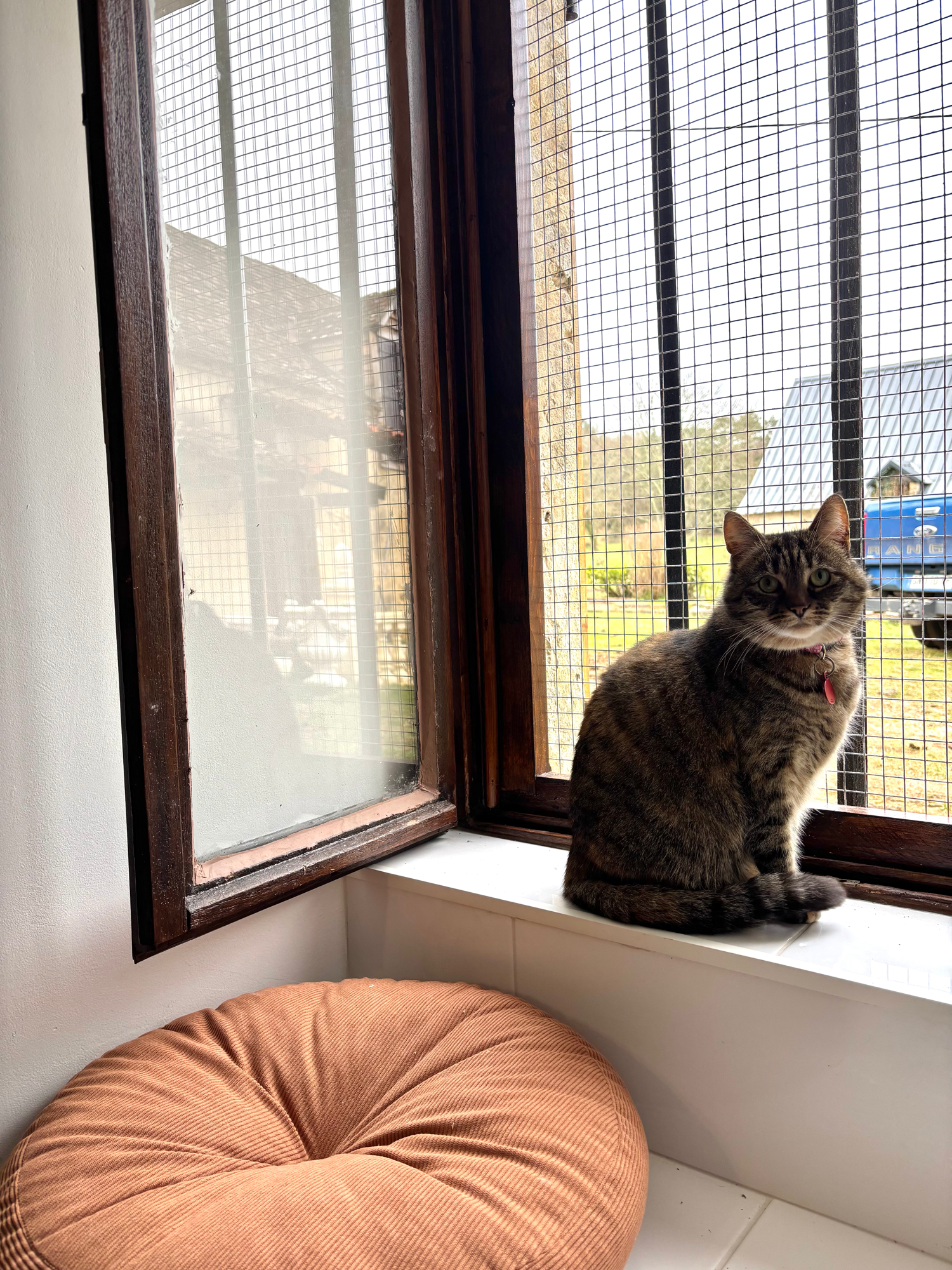 In my house cat sitting with outside space